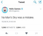 Perhaps the most awkward moment of the whole drama was when the official @hellogames account tweeted that “No Man’s Sky was a mistake.”