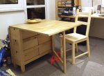 NORDEN is a gateleg table (with foldable desk) from IKEA. I bought it without much thought because of the nice look and it seeming ideal for my small apartment. I quickly discovered some flaws in its design, but they could be fixed without much trouble.
