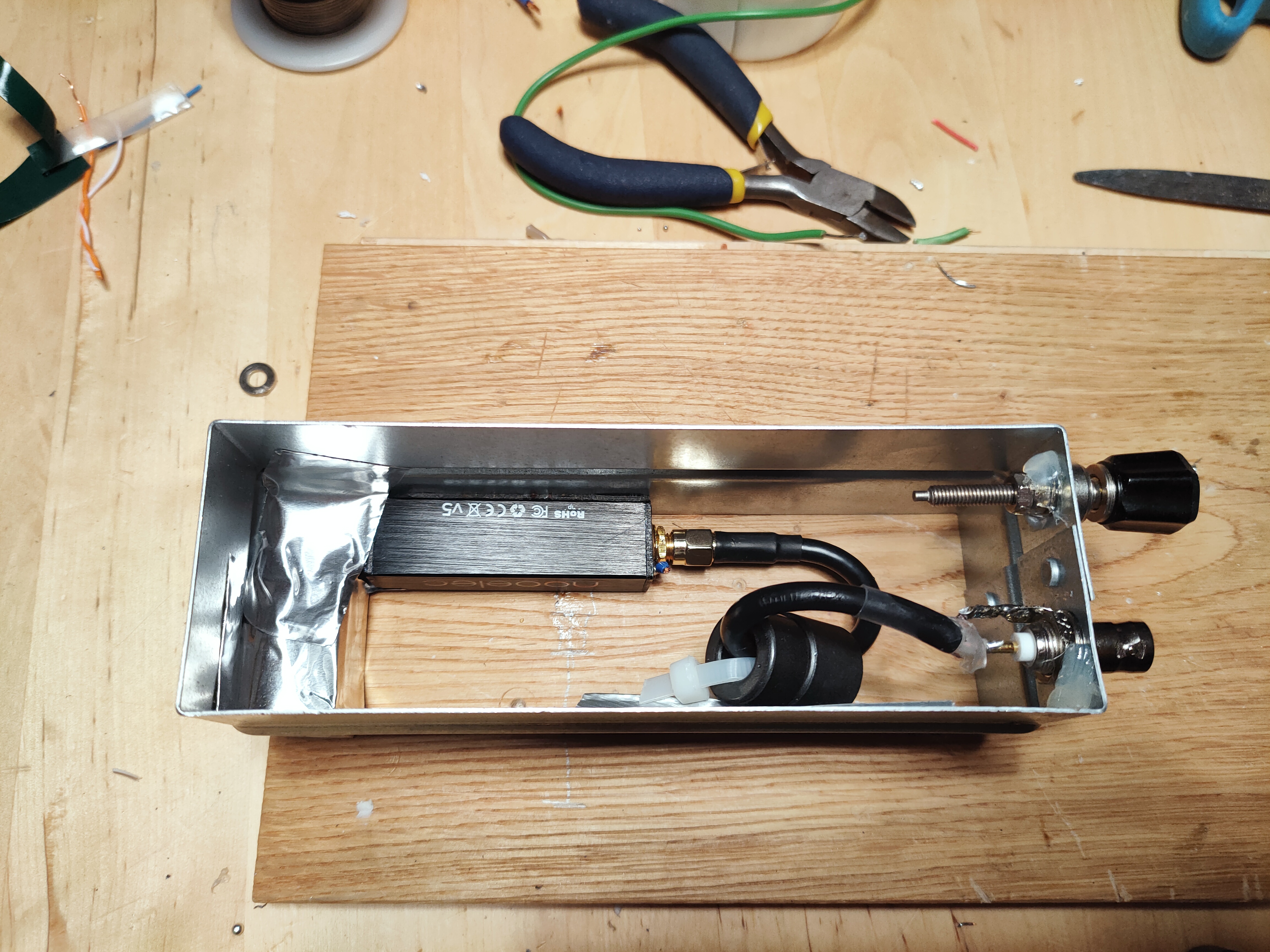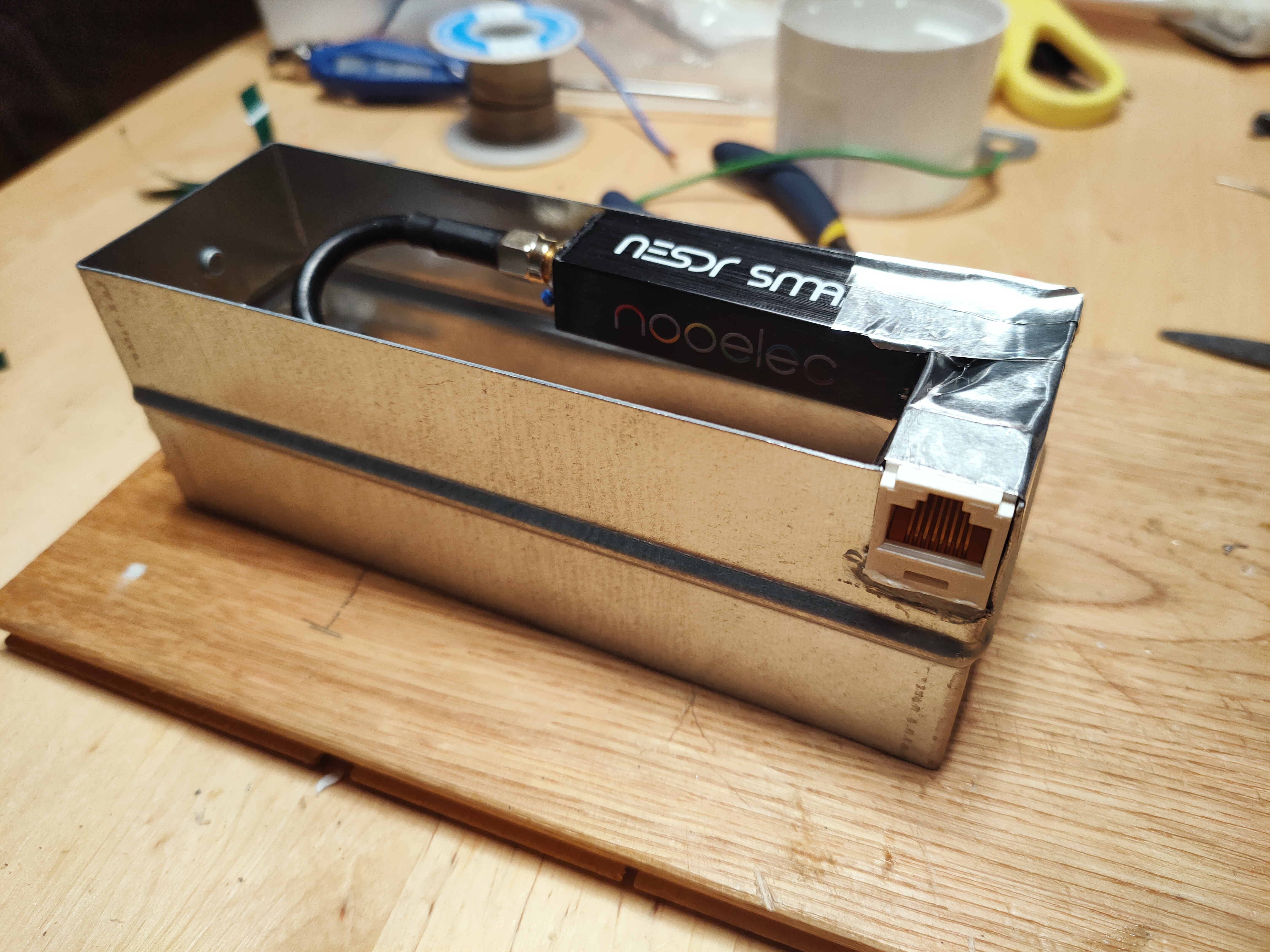 This article documents the saga of trying to fight interference and flaky USB port on the NOOELEC stick. It is otherwise a capable SDR but has some flaws, namely overheats to hell, has a lot of interference, and has a wobbly port. For first experiments with the RF spectrum it was well adequate though.