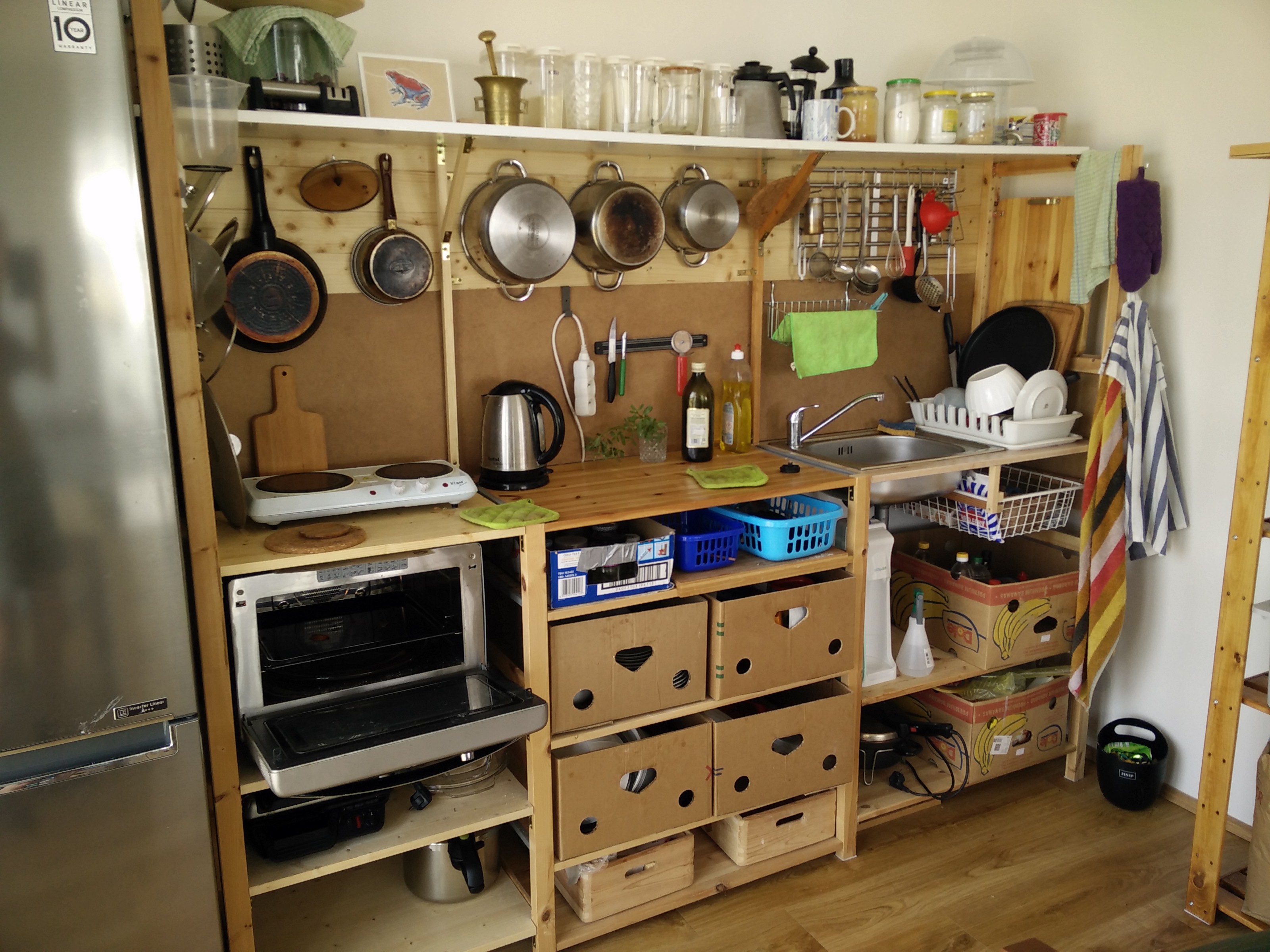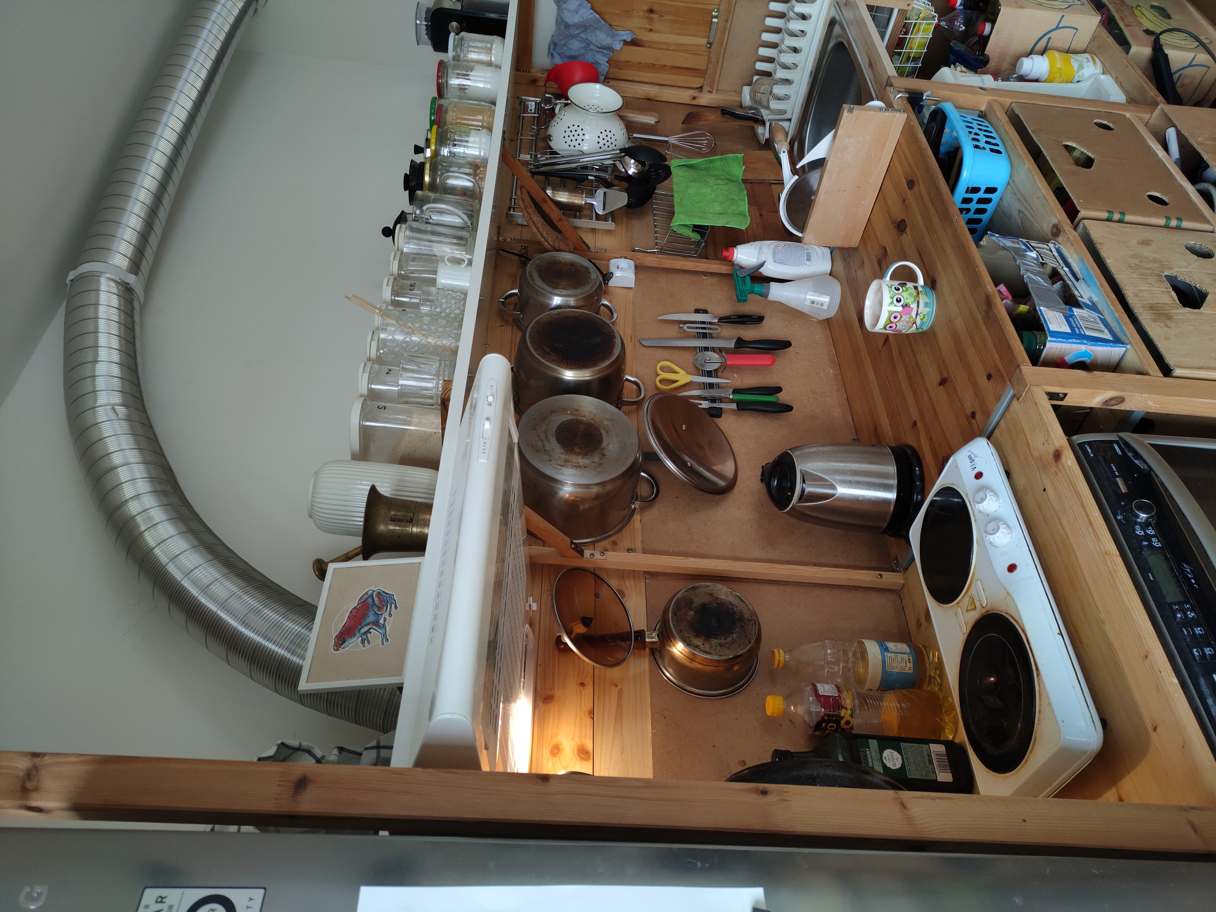 I later replaced the ceramic cooktop with Sencor induction 2-hob. It looks kinda ghetto but everything is on hand and it is actually very practical.