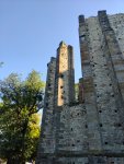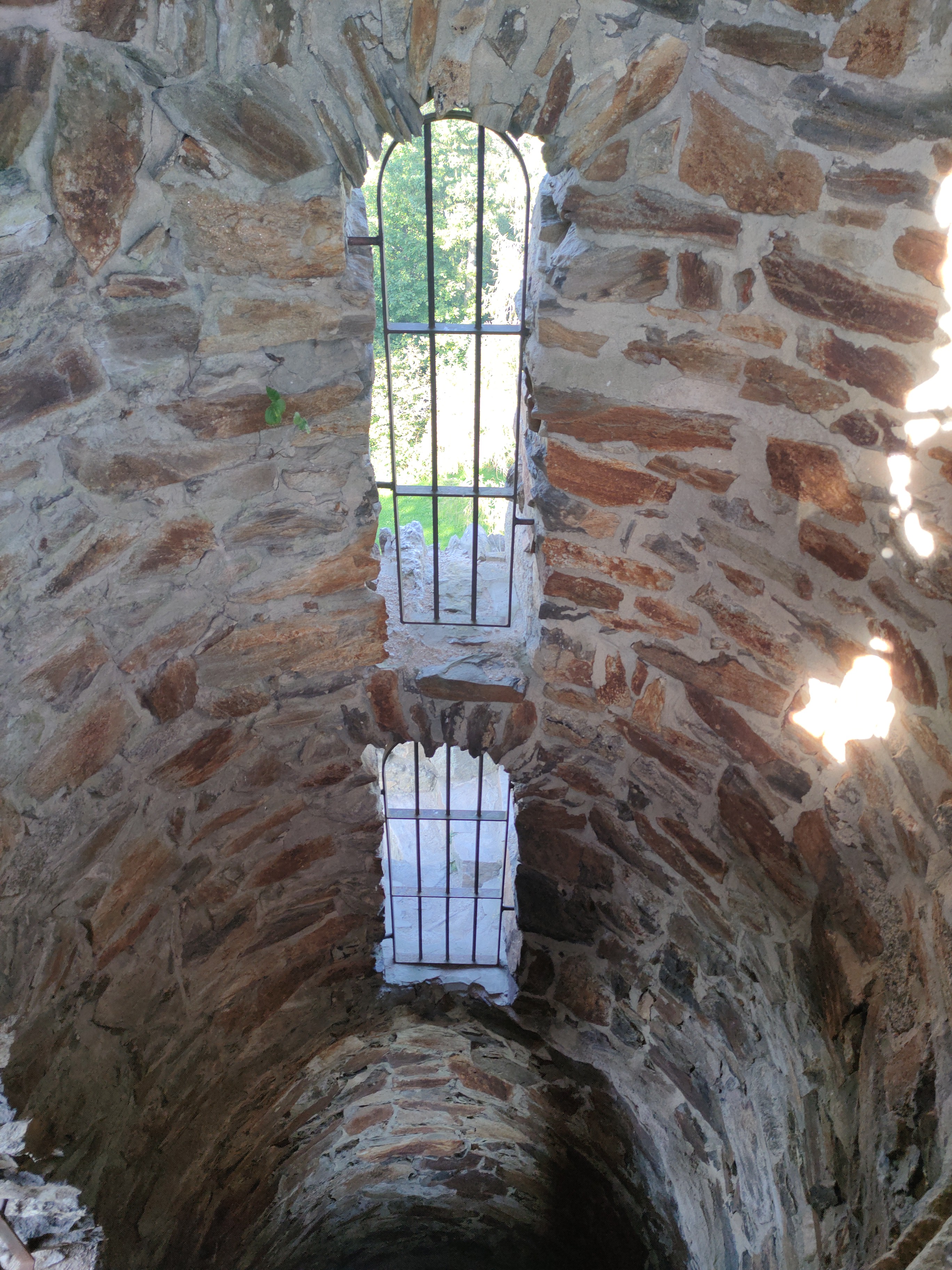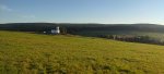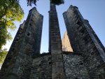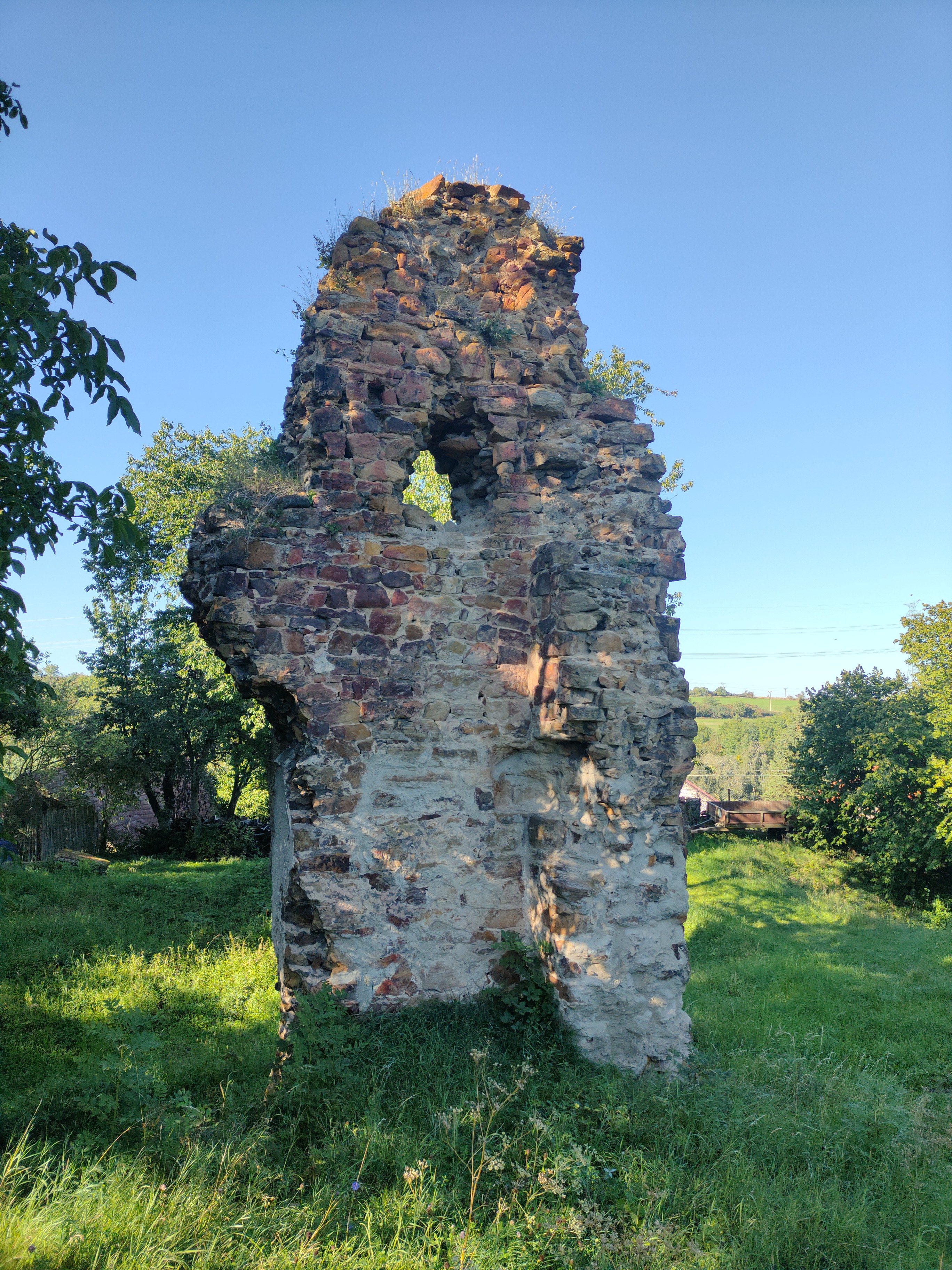 Nedaleko Týnce se stavuji na zřícenině hradu Žerotín (moc z hradu, ale místo je to pěkné a zachoval se velký sklep) a v bufetu u rybníka si dávám pivo a doplňuji vodu. Překonávám dálnici a podle všudypřítomných cedulí rychle najdu nedostavěný kostel, který se tu nazývá prostě “chrám”. Vstup je volný.