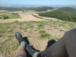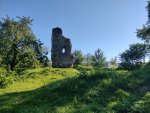 Po cestě zastavuji u zříceniny zámku v Libčevsi, je ale bohužel nepřístupná. V mapě mě zaujme nedaleká přírodní památka Čičov, má tam být “dokonale vyvinutá stepní vegetace”, což se ukazuje jako celkem normální tráva. Je to šílený kopec a většinu cesty kolo tlačím kopřivami, další výborný nápad po Červeném vrchu. Nahoře mě však odměňuje fantastický výhled po Středohoří a potkávám tu mimo pár turistů dva krkavce.