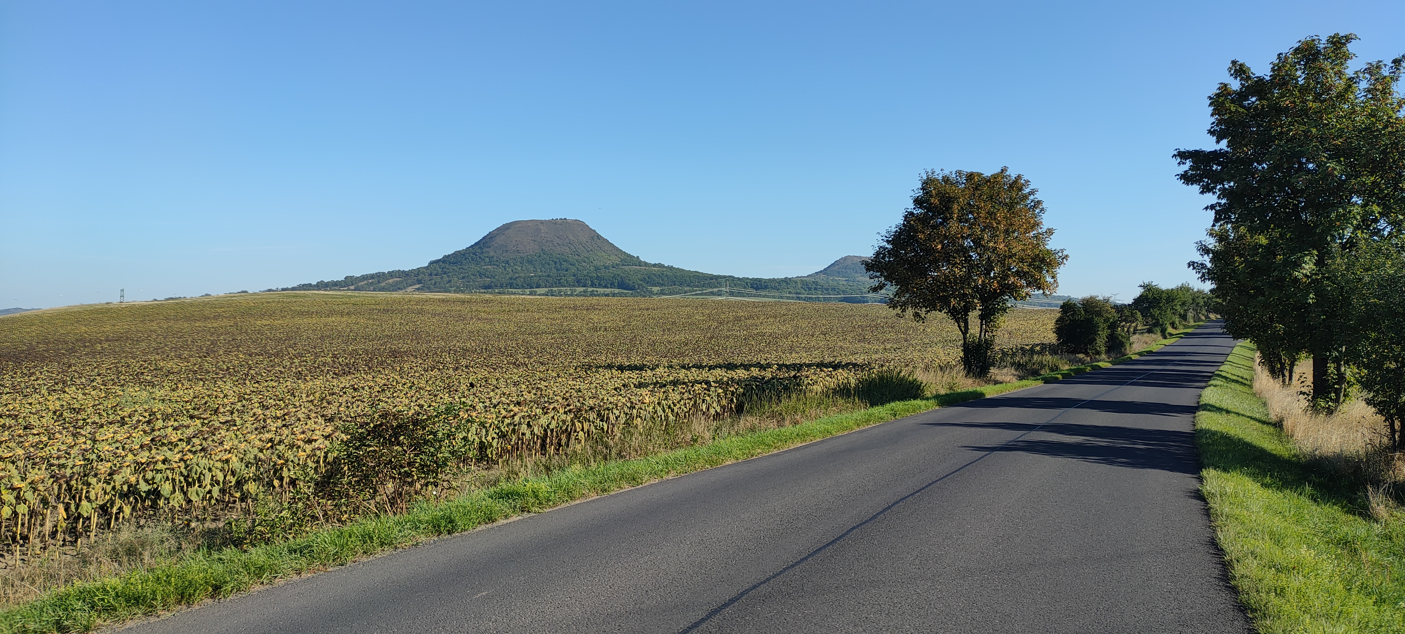 Na oběd se chci stavit v restauraci pod Bořní. Po vystoupání na úpatí hory však nacházím restauraci pustou a zjevně v přestavbě. Na webu to samozřejmě napsané nemají. Sjíždím do nedaleké Bíliny a u nádraží si dávám kuřecí nudličky s rýží, trochu přesolené, a pomelo-grep. U baru doplňuji vodu do láhve.