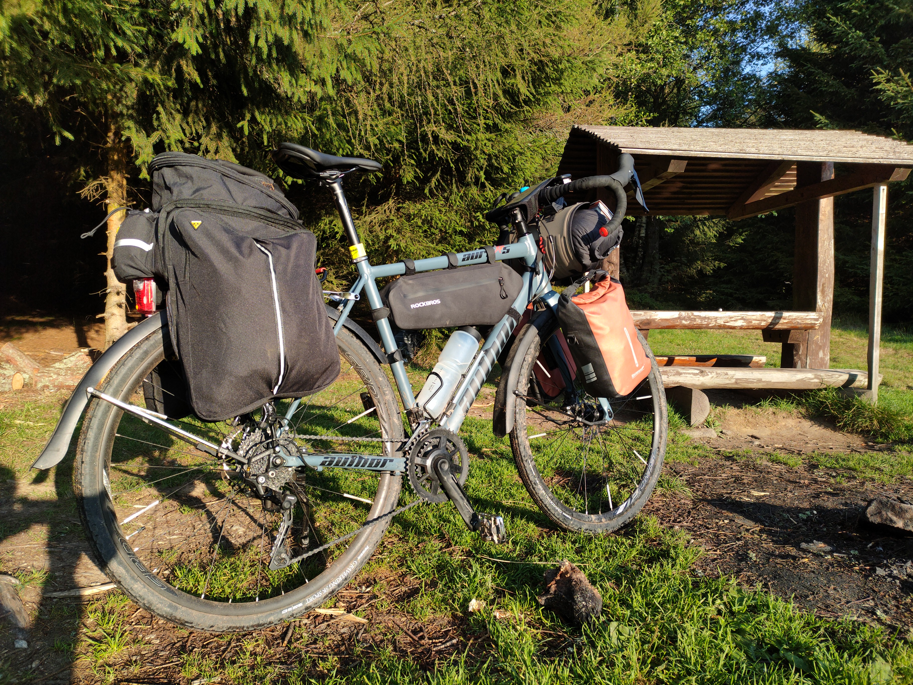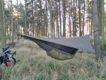 Můj první vícedenní trip byl Praha-Lipno a zpět, se stanem a plachtou (něco přes 400 km a 3 dny). Po zkušenostech s hledáním místa na stan, kdy jsem nějakých 40 km za šera projížděl kolem Lipna a koukal na stromy všude kolem cesty, jsem si pořídil hamaku. Tu jsem pak jel vyzkoušet na okruhu Praha-Ralsko (2 a půl dne, 352 km).