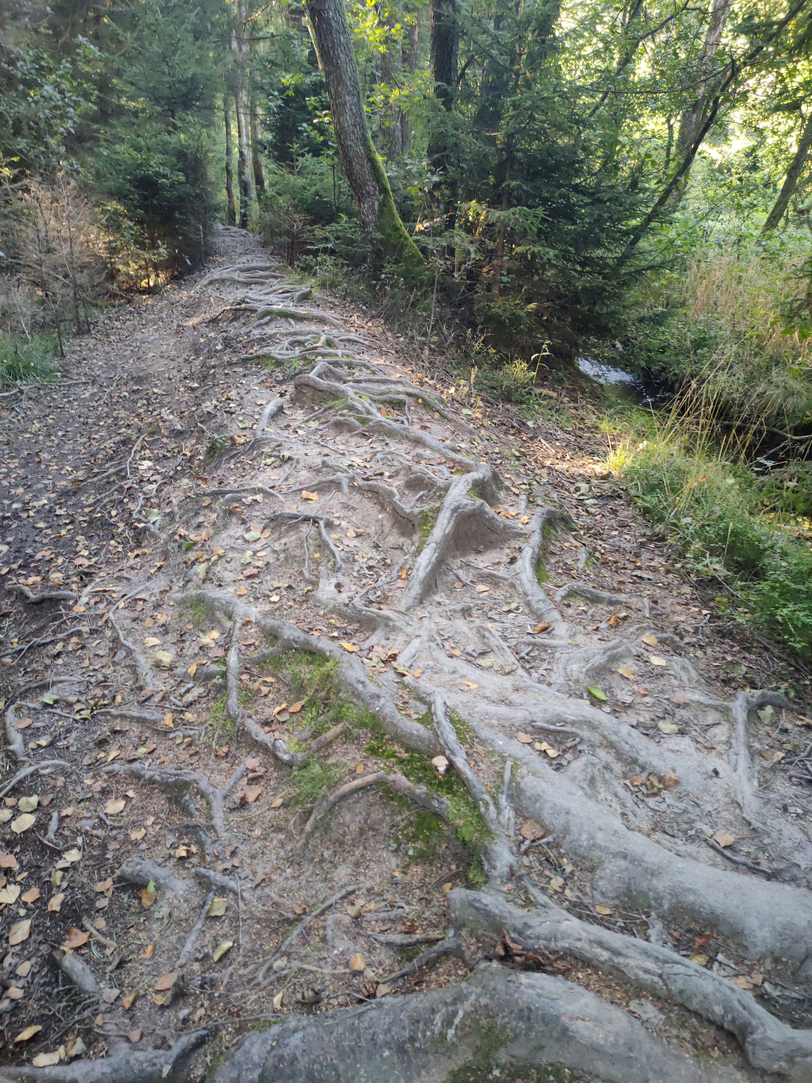 Celou dobu jsem trojmezný bod považoval za bod nejzápadnější, ten je ale o pár kilometrů víc na jih. Je chladné ráno a tak chvíli hledám vhodné místo na sluníčku na snídani. Zastavuji na lesní cestě a snídám koláče z Božího Daru. Z německé strany hranice se už kolem sedmé ozývá křovinořez … blbci nejsou jen u nás.