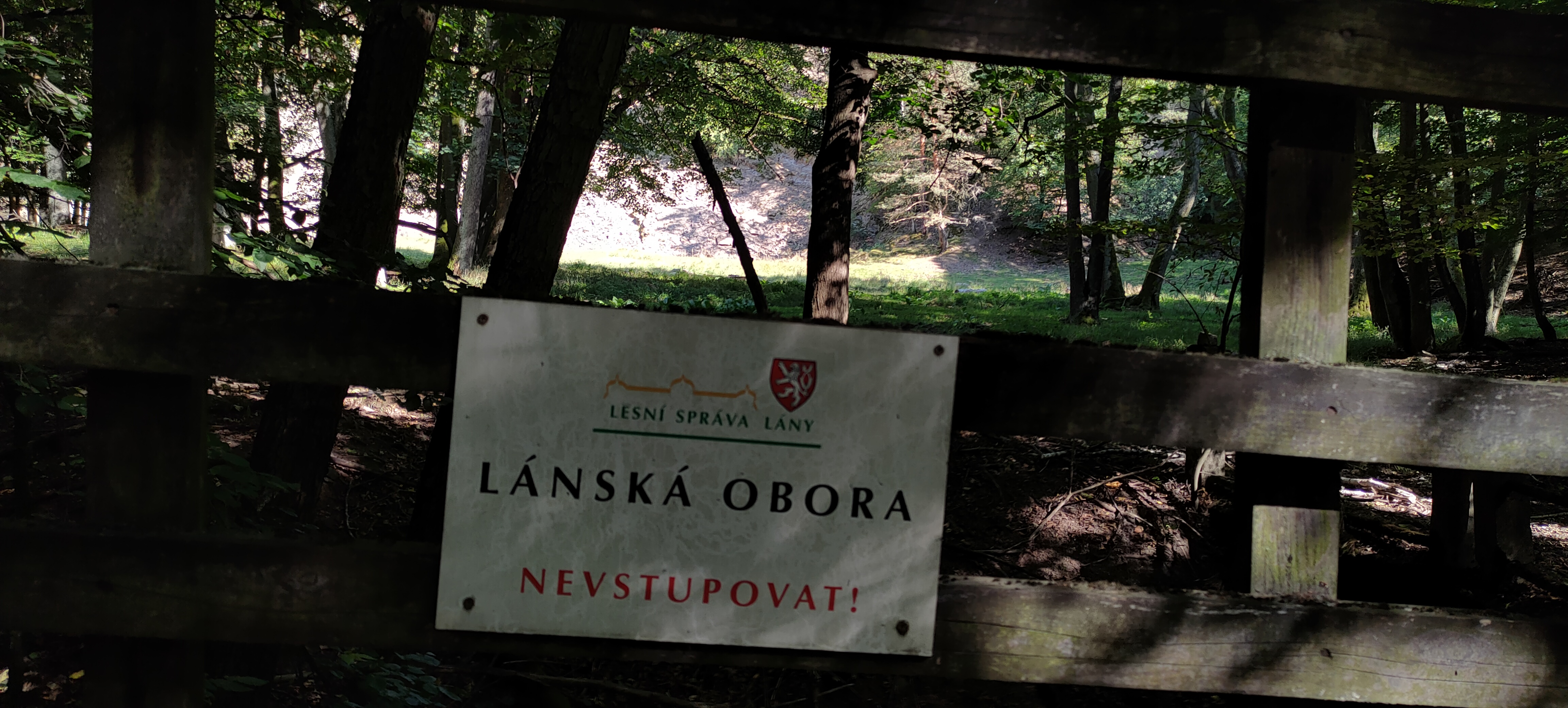 Pokračuji skrz Rakovník a kolem Lánské obory. Za plotem je vidět lom, tady asi Balák kradl ty kameny? Dobré místo na zlodějinu, není tu žádný signál.