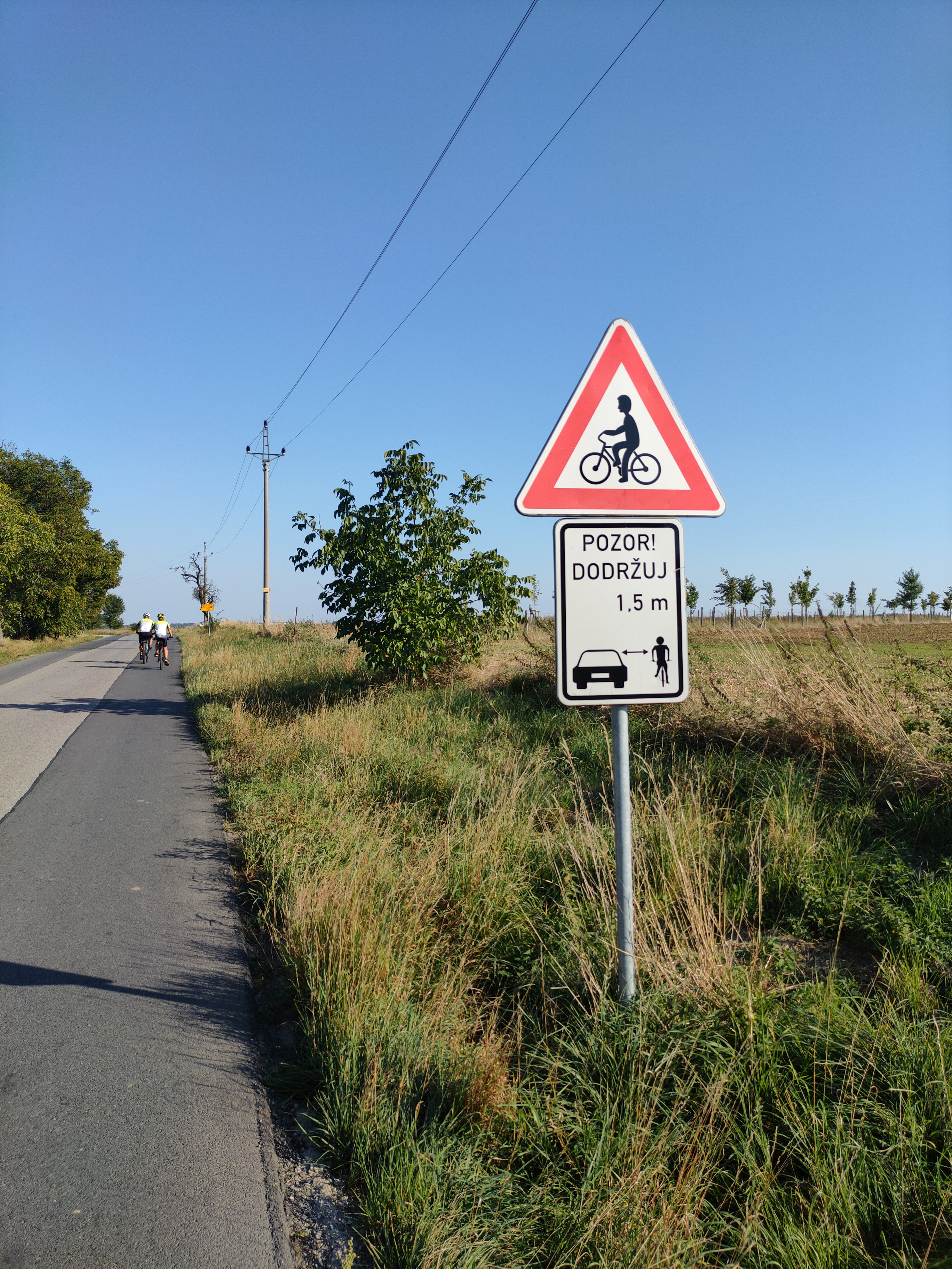 Podél obory vyjíždím až do samotných Lán (na plotě jsou cedulky, že se tu chovají divočáci) a odtud víceméně přímo ku Praze. Zhruba od Rakovníka přestávají cyklisti odpovídat na pozdrav a také tu začíná epidemie prasáckého řízení, nejen klasika (kolik že je 1.5 metru?), ale i nebezpečné předjíždění před horizontem a bujné troubení. Řád děravého výfuku získává řidič Lamba, který mě předjížděl na rozbité silnici těsně za koncem obce aspoň stovkou. Moc pěkný, gratuluju.